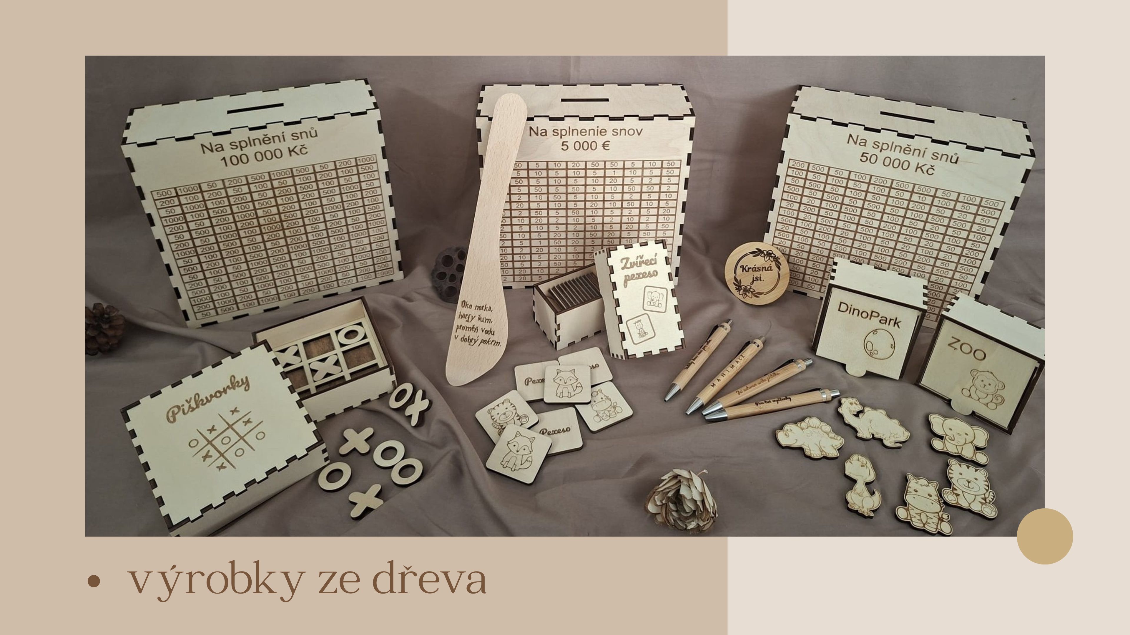 Každý kousek vzniká s láskou, důrazem na detail a špetkou fantazie – od gravírovaných klíčenek až po kouzelné dekorace inspirované přírodou a pohádkovými světy.