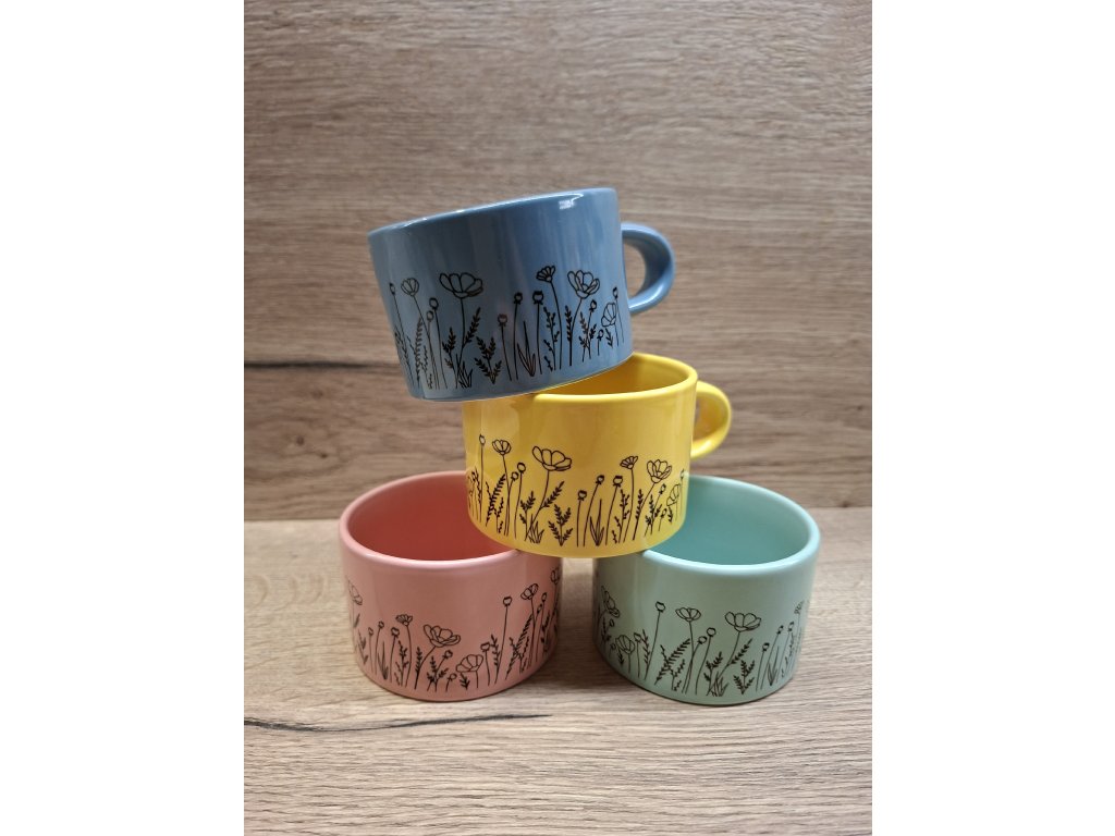 Elegantní hrnek o objemu 200 ml (užitný 150 ml) je jako stvořený pro ranní kávu, čaj nebo chvíle pohody. Ozdobený jemným motivem lučního kvítí a dostupný ve čtyřech barvách – žlutá, růžová, modrá, zelená – rozzáří každý stůl. Díky menší velikosti je ideální i pro espresso nebo malý čaj.