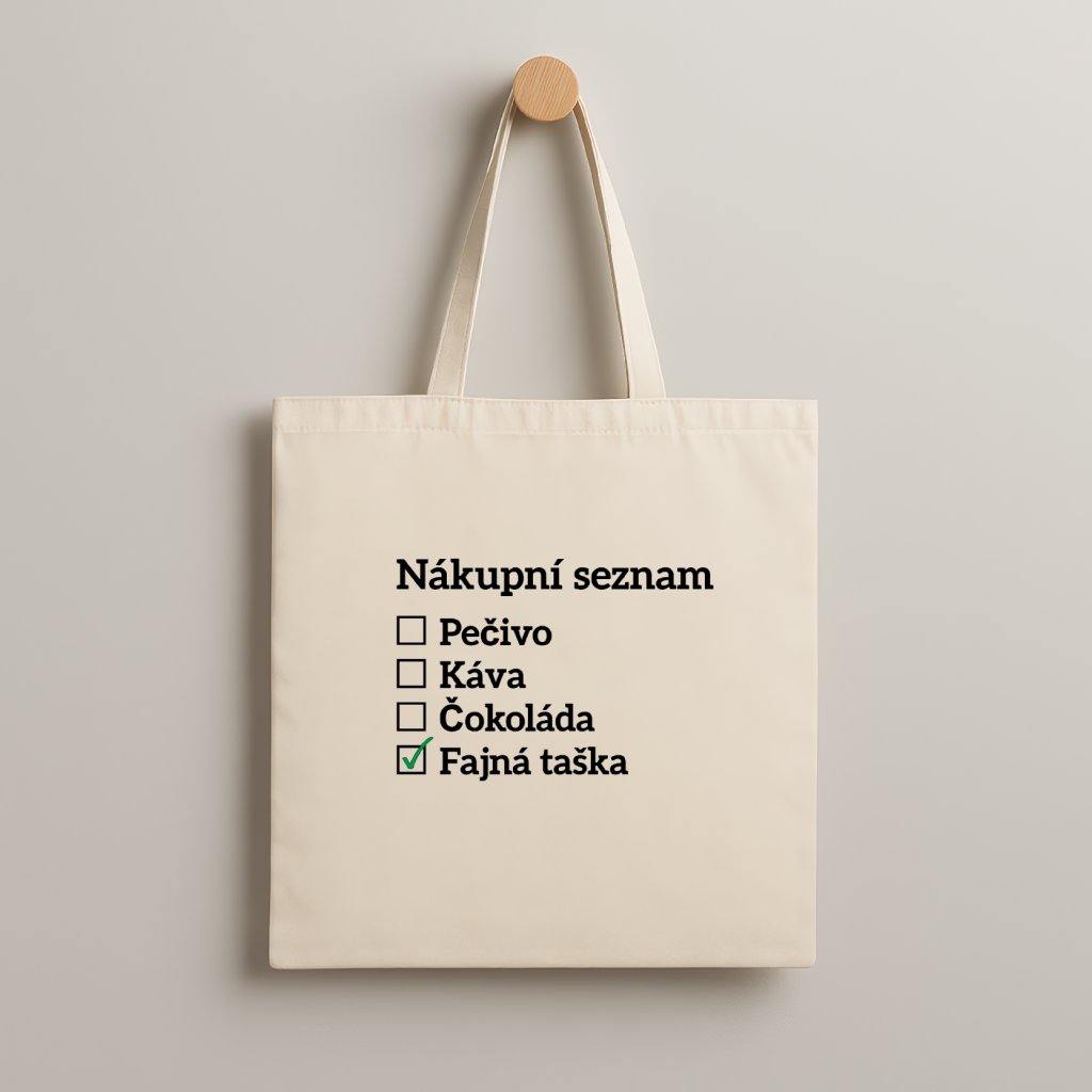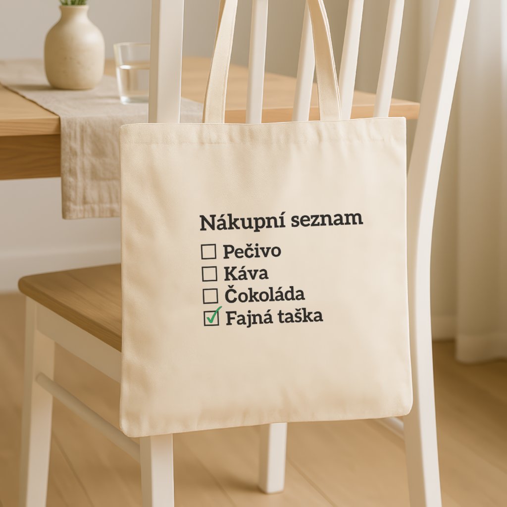 Seznamy bývají nudné… tahle taška ne! Jediná položka, kterou můžeš hrdě odškrtnout, je fajná taška.