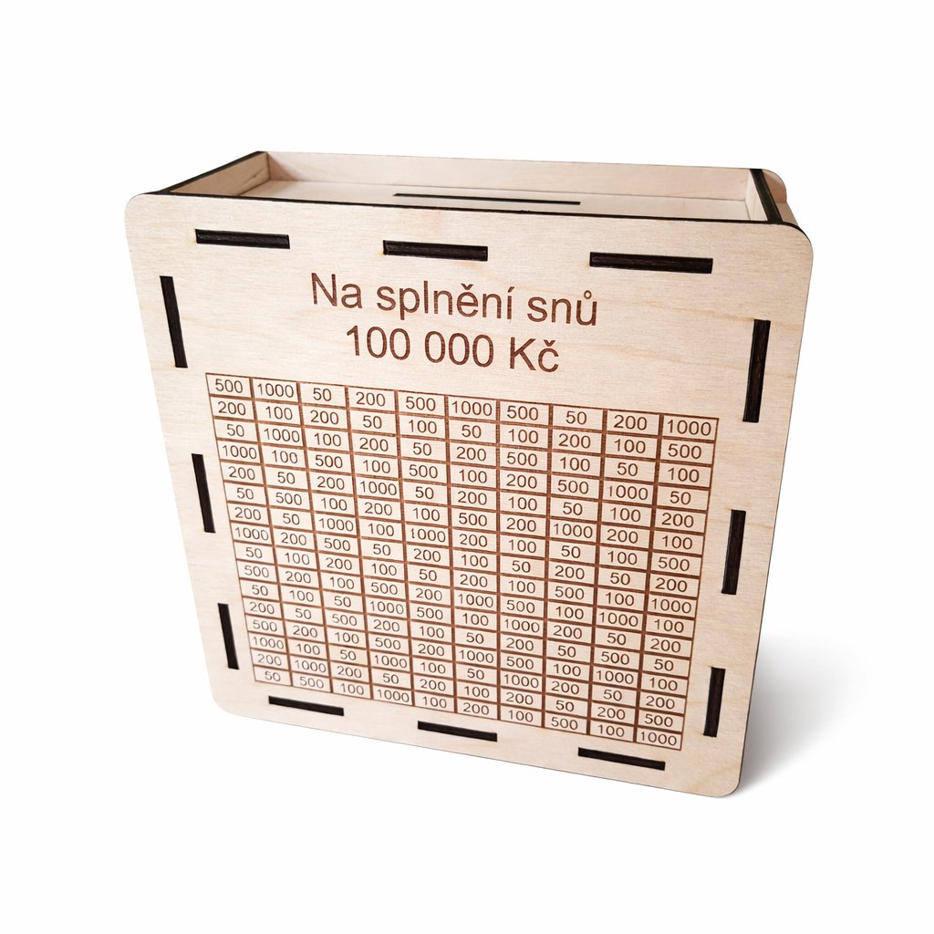 Spoření ještě nikdy nebylo tak zábavné! Tahle originální pokladnička ti pomůže plnit si sny – krok za krokem, políčko po políčku. Stačí pravidelně vkládat bankovky, odškrtávat si částky a sledovat, jak se tvůj cíl blíží.