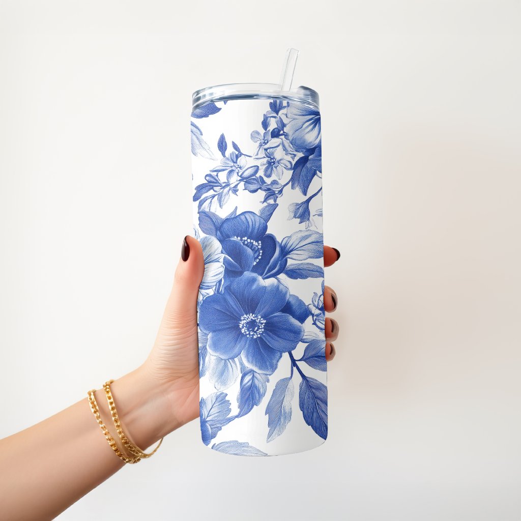 Termohrnek s motivem květinového modrotisku květin z nerezové oceli 590 ml s brčkem. Udrží nápoj horký 8 h a studený 12 h. Těsní, praktický, dárkově balený.